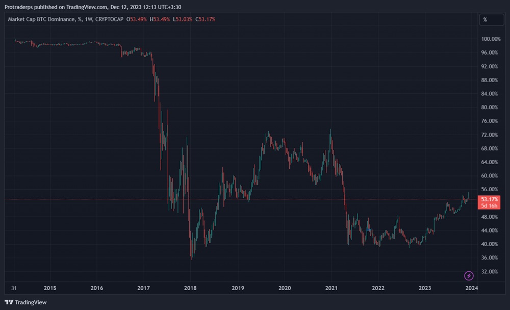 همه ما می‌دانیم که بیت کوین، بزرگترین رمزارز جهان از نظر مارکت‌کپ، به طور گسترده‌ای در سراسر جهان معامله می‌شود. هرچند که تسلط بیت کوین قبلاً نزدیک به ۱۰۰٪ بود، اما حضور و رواج آلت‌کوین‌ها منجر به کاهش تسلط بیت کوین شده است. زمانی که مارکت‌کپ چندین آلت‌ کوین مهم میزان مارکت‌کپ بیت کوین را کاهش می‌دهد، ممکن است این امر نشانه شروع یک فصل آلت‌کوین یا همان آلت سیزن باشد.