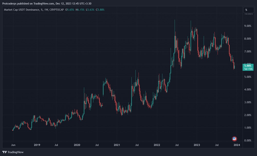 از طرف دیگر کاهش دامیننس تتر نشان‌دهنده حس مثبت سرمایه‌گذاران به بازار رمزارزها است چرا که در حال تبدیل تترهای خود به ارزهای دیجیتال هستند.